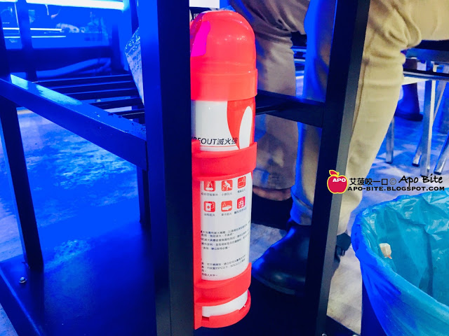 每張桌子下也都有特別設置專用噴霧式滅火器