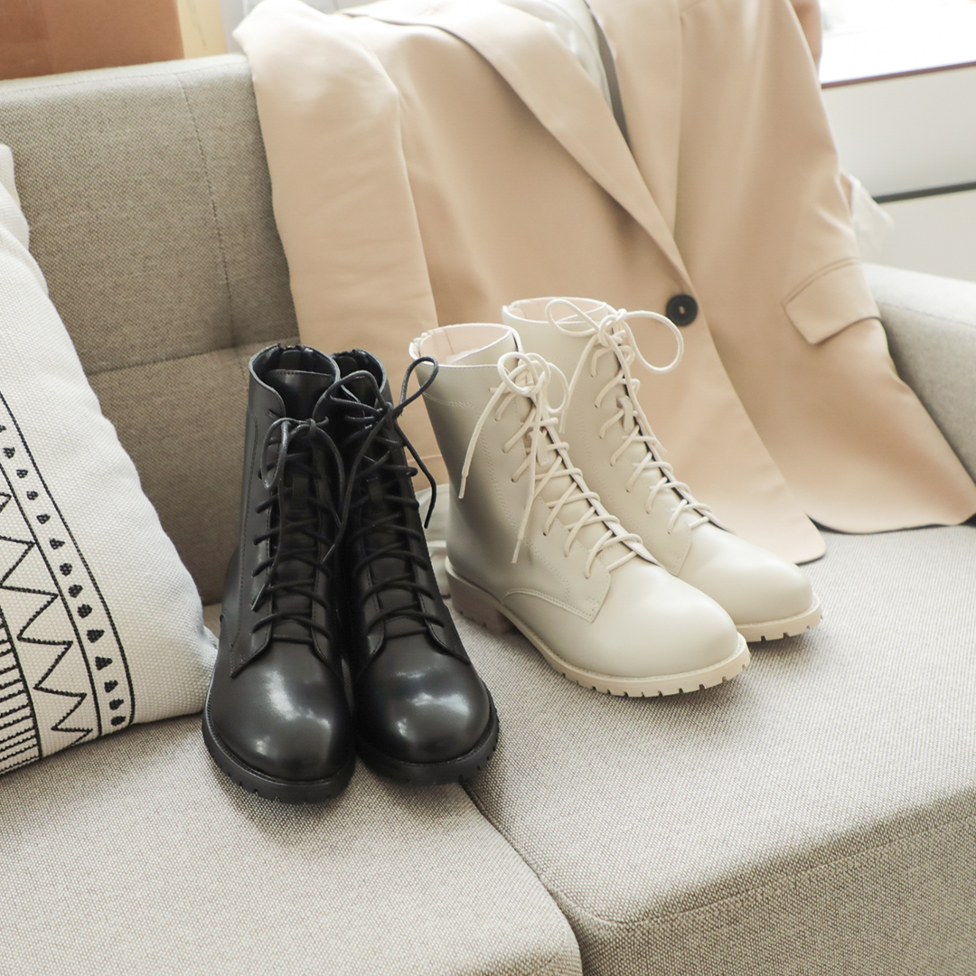 秋冬新品2. 人氣鞋款增高必備|後拉鍊綁帶馬汀靴