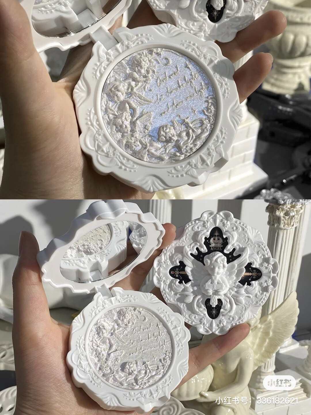 史上最精緻也是最浮誇的打亮盤!讓網友們暴動的小天使浮雕高光,外盒設計是立體的小天使浮雕造型,包裝特別分成白天使和黑天使,光外型已夠讓人驚艷,沒想到打開來裡面的餅蕊,竟然也看得到而且摸得到3隻立體的小天使,做工真的太精緻,完全就是藝術品等級啊!(太狂了)