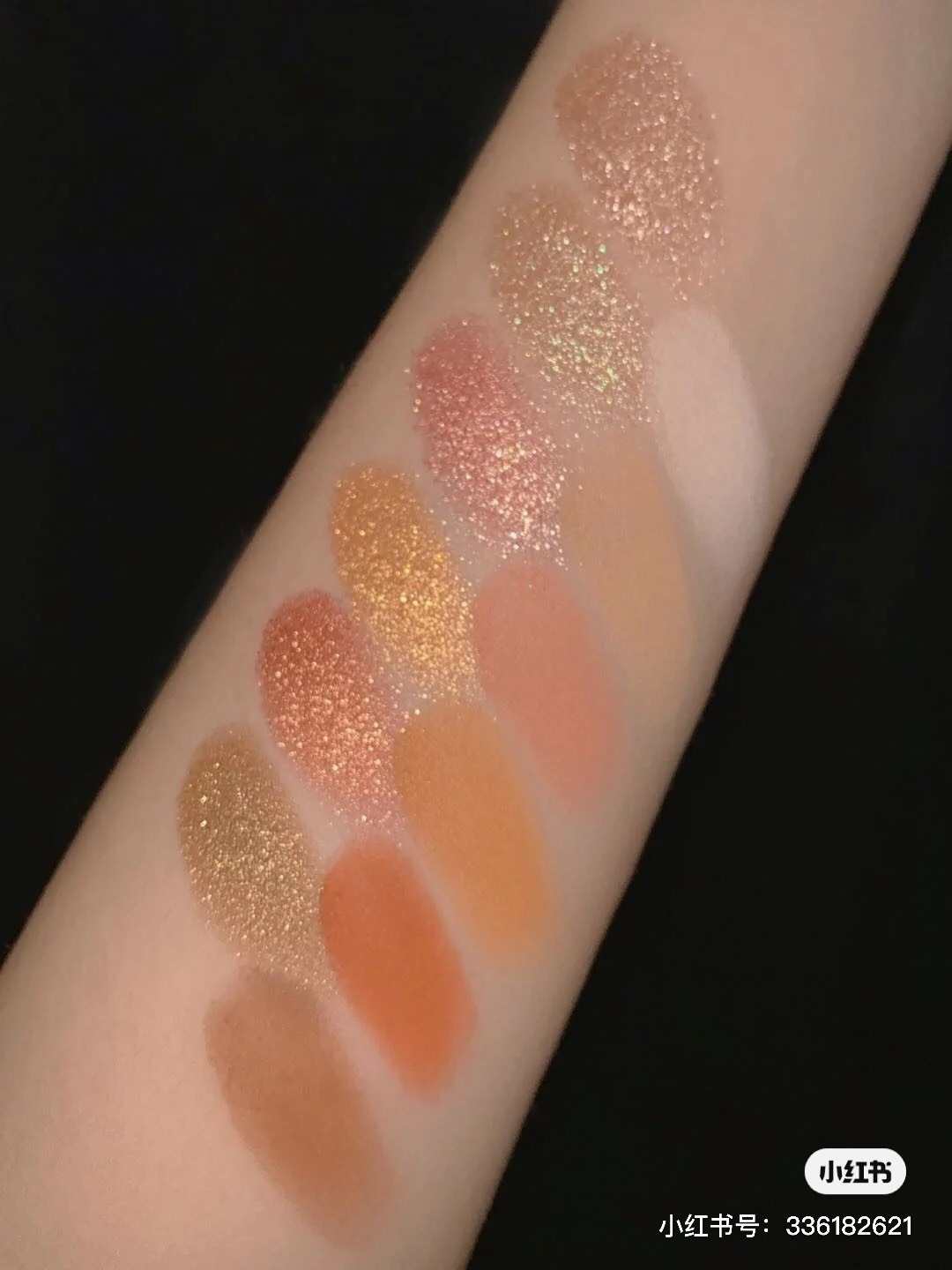 12色眼影盤同樣分成黑白天使兩盤,據網友開箱分享,實體很有質感,粉質很細膩,白天使盤是橘色系,黑天使盤則為粉紫系。橘色系畫在眼睛上的妝容超級美,很像夕陽灑在肌膚上,閃耀著光澤,一年四季都適用的美色!