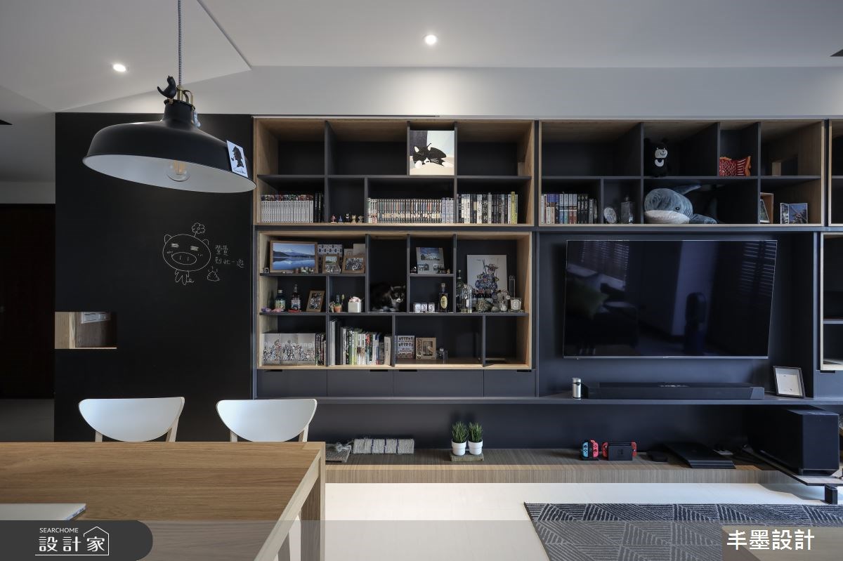 電視主牆是客廳的一大重點,喜歡素雅潔淨的電視牆面設計,可以將稍微調整位置與玄關或者餐廳空間共用,在設計上也可以跳脫傳統正方的電視櫃,利用矮櫃、層板以及高櫃等各種組合來打造豐富的收納機能,也能創造有變化靜的客廳端景。另外,將電視主牆佈滿收納的設計也有很多種方式,有的可以透過局部開放與封閉櫃體,搭配大小切割面來達到收納量與設計美觀的雙重平衡。家裡有毛小孩的屋主,也可以考慮用層板或者在格櫃側邊挖空打造貓通道或貓跳台,活用牆面規劃出多元化的複合式收納牆。