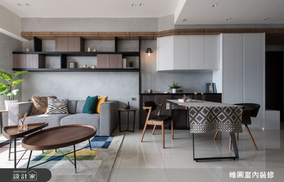 現在居住的坪數比起過往平均縮小了許多,在規劃餐廳時常常會把辦公區或書桌與餐桌混用以解決在坪數有限的情況下還能滿足生活機能,而開放式設計下,也利於設計師將餐廳收納和書房收納混用。由於收納跨越兩個不同場域,在設計上就會從需求面著手,將零散地層架、置物籃、格櫃以及門片櫃等等利用系統板材或木作整合在一個牆面,在小坪數或有限的空間中達到收納的完整性。