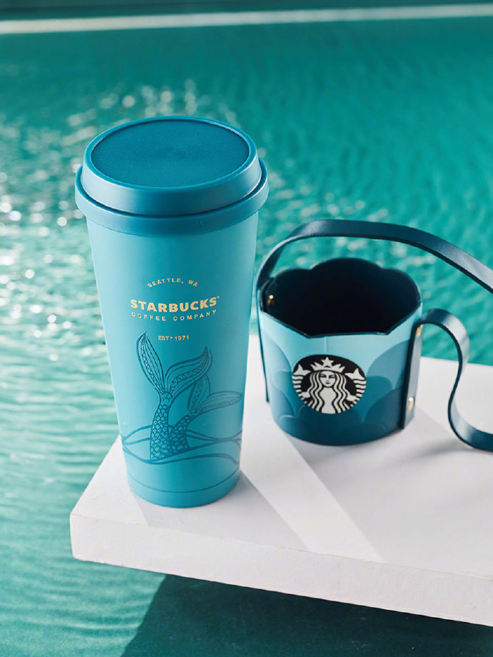 如果上面的小香風杯套搶不到也沒關係,可以考慮同是美人魚系列的二合一,這款雙魚尾不鏽鋼杯套組也是很超值。雖然杯套沒那麼浮誇,但這種層層堆疊的波浪感和星巴克美人魚簡直超搭的呀!