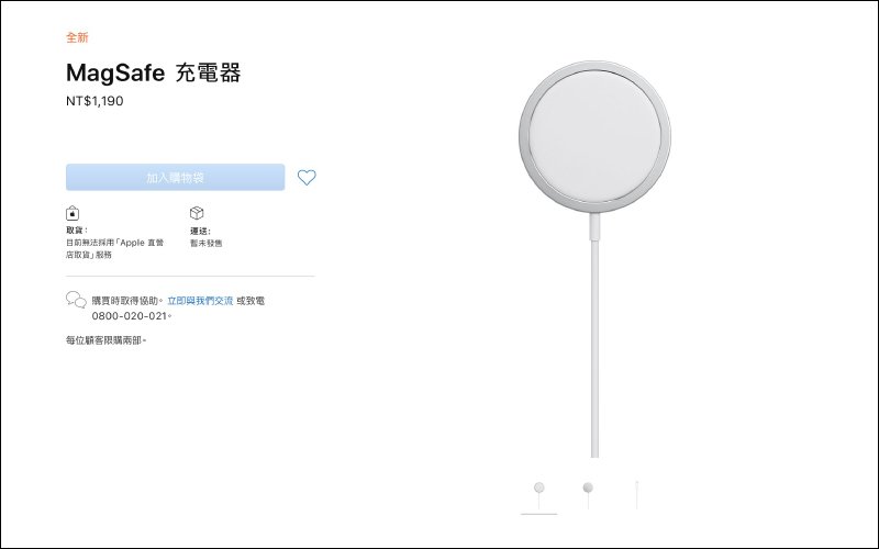 由於 Apple 原廠「MagSafe 充電器」僅有 1 公尺 USB-C 整合式連接線,在購買時是不包含 USB-C 充電器的,因此消費者需要另外選購 20W(含)以上輸出功率的 USB-C 充電器。