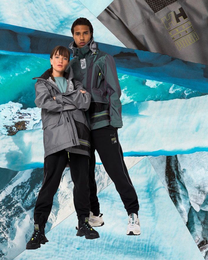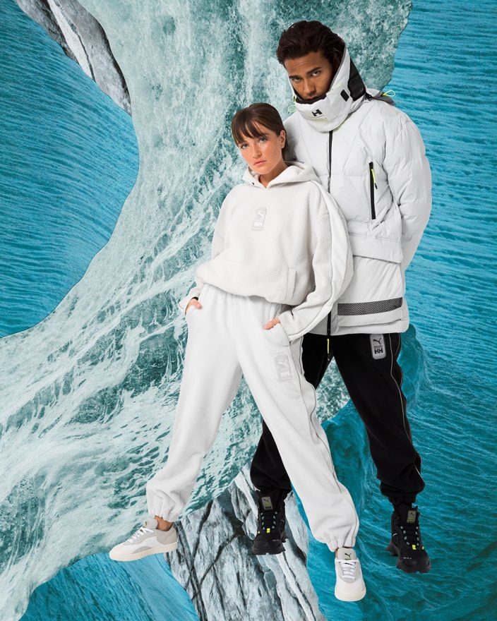 PUMA 三度攜手挪威百年戶外名品 HELLY HANSEN,以北極圈巡邏隊伍的極地裝備為本季創作靈感,大量運用 PUMA stormCELL 保暖科技、刷毛及絨毛面料,賦予 PUMA SELECT x HELLY HANSEN 秋冬聯名系列高科技且充滿未來主義的設計主軸,運動大量螢光細節和反光科技材質貫穿本季作品,將運動潮裝與實用機能結合,在無法出國的非常時期,改以時尚精神前往神遊極地巡禮。