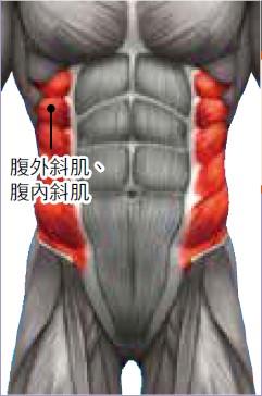 腹斜肌群的項目分成「回旋(腰部旋轉)類」與「側屈類」。回旋類的扭轉抬腿與槓片腰部旋轉訓練,對伸張狀態的負荷及伸展效果都很好,但是負荷容易流失。同屬回旋類的繩索腰部旋轉訓練與機械的腰部旋轉訓練,則能夠藉由動作避免負荷流失。