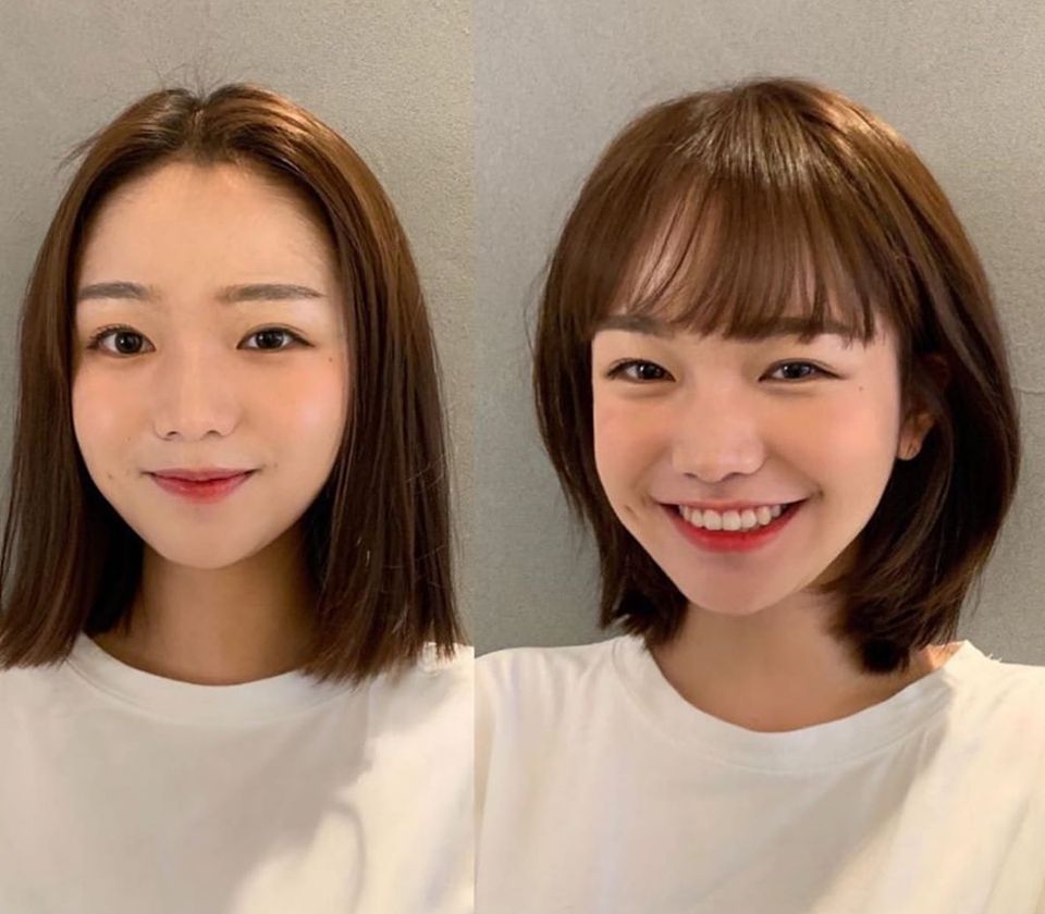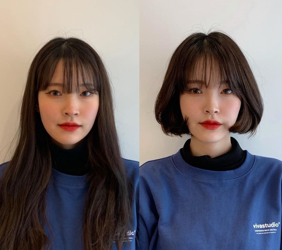 另外這位小姐姐更明顯,左邊長髮雖然有剪空氣瀏海稍微修飾、但臉還是偏長,剪了短髮後反而讓臉看起來有截斷感,讓臉長縮短!