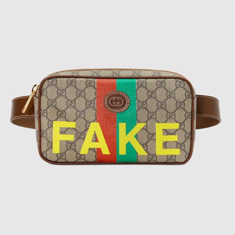 這幾年腰包從過時的單品翻身,搖身一變成為最具話題性的包款!Gucci Fake Not 系列這次以簡單方正的設計,搭配搶眼字樣的色彩,讓你穿搭上不用思考太多,即便是一件素 Tee 配上它也可以是街拍焦點。(商品售價:NTD36,100)