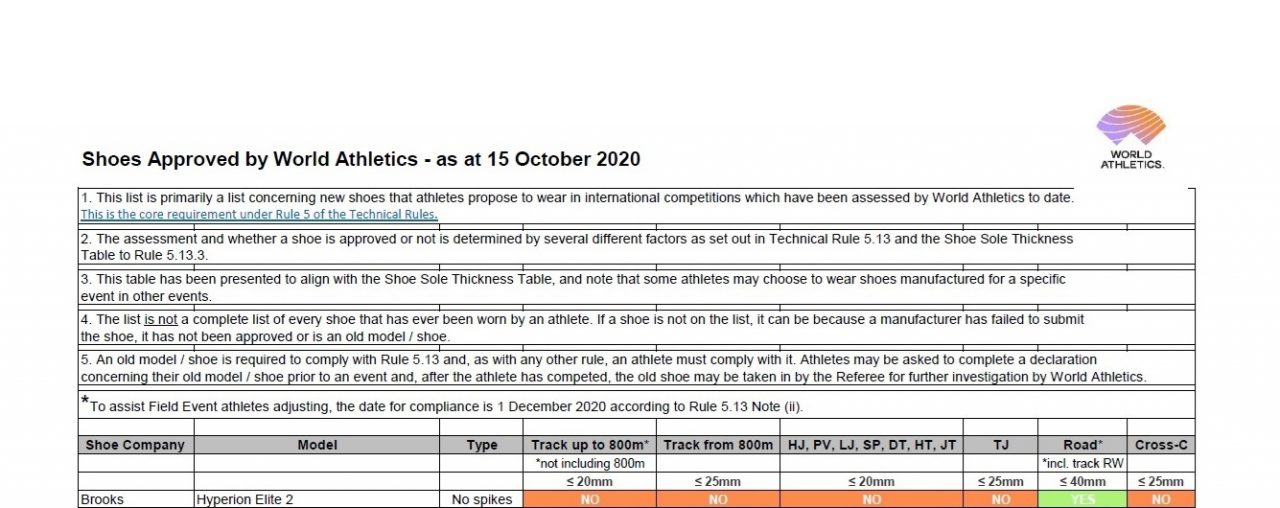 其中一條規範明定「鞋款必須在公開的零售市場 (線上或者實體店面),至少販售四個月,才能用於賽場上」,使得各家跑鞋紛紛趕在原定 2020 年 7 月舉辦的東京奧運前四個月上市。雖受 COVID-19 疫情影響,東京奧運延期,但世界田徑總會的審核並沒有因此延期。
