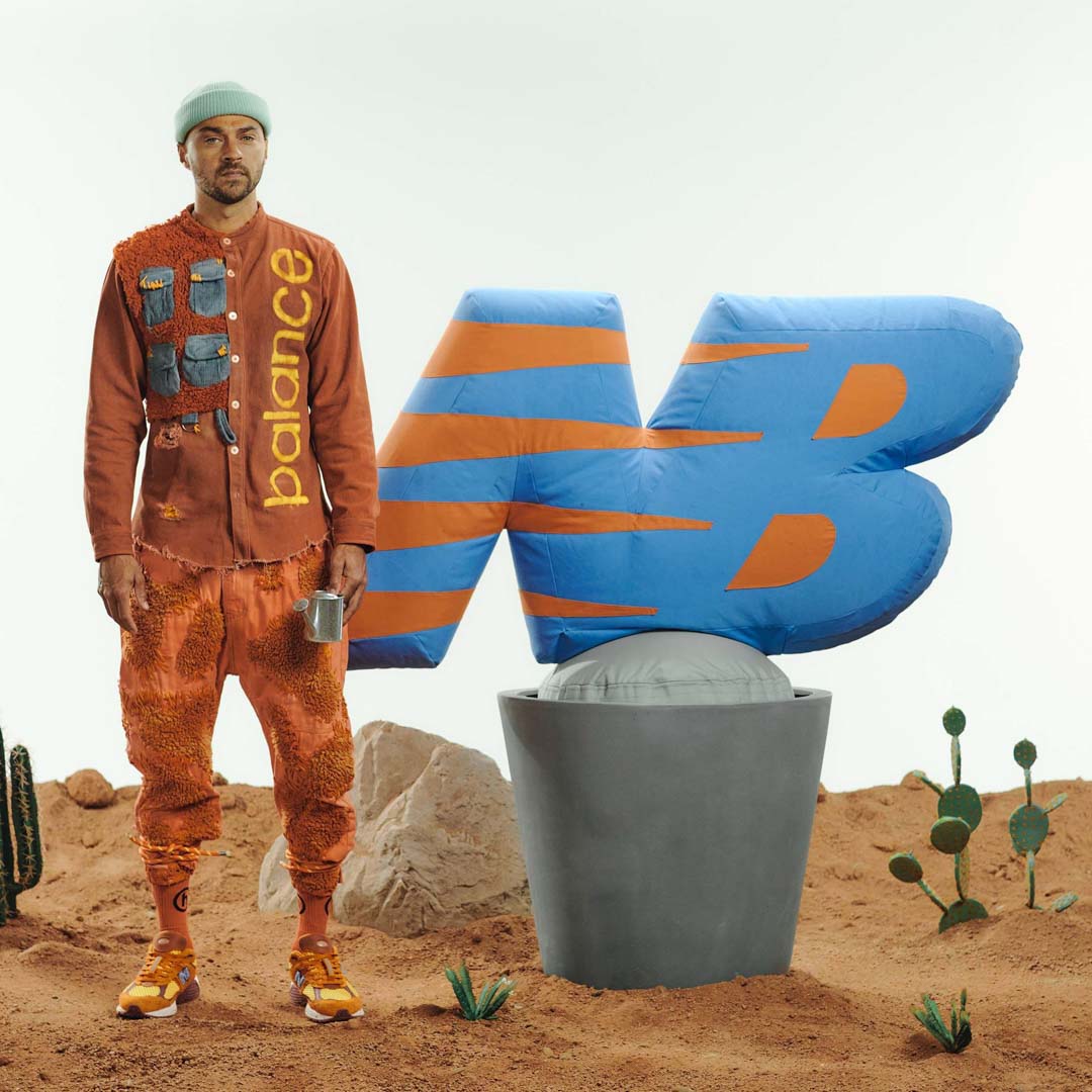 介紹設計師 Salehe Bembury 時都會提到他曾是 YEEZY 系列鞋履設計師,並在 2017 年接管 Versace 運動男鞋設計一職,代表作 Chain Reaction 開啟精品球鞋的新面貌。這次 Salehe Bembury 以個人名義首度與 New Balance 合作,粗糙的鞋面用料以及大地色系是 2002R 目前推出以來最顯眼的作品,Salehe Bembury 在訪問中解釋道,自從他搬至美國西岸後,便開始爬山親近大自然,這雙鞋的配色也正啟發自亞利桑納州北方的羚羊峽谷,砂岩構成的橘紅色以及抬頭仰望的天空藍注入鞋中,Salehe Bembury 將精品的華麗與戶外的樸實融合,打造出一雙定位特殊的有趣聯名。