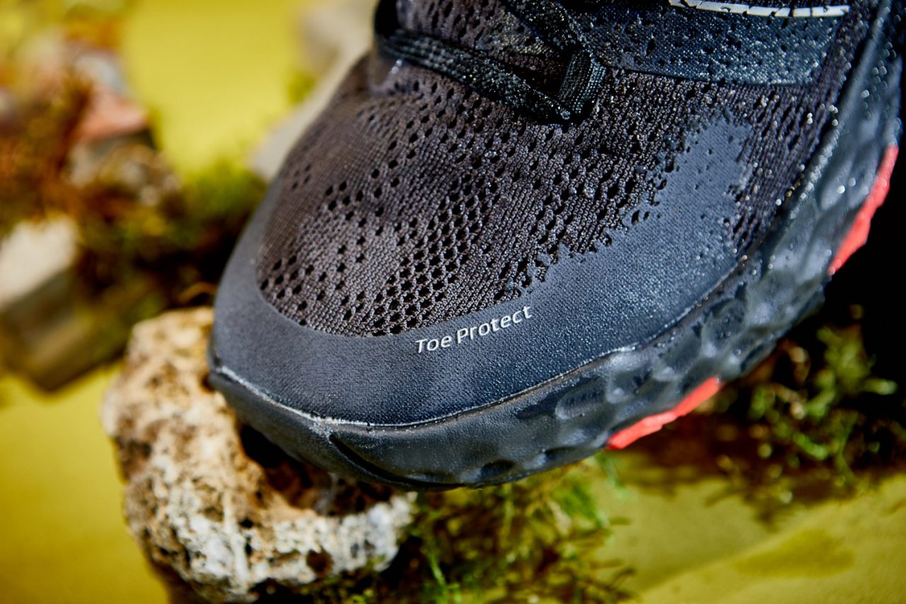 搭載 Debris Free 防護層避免碎石或小樹枝落進鞋內產生異物感或刺傷腳掌,本來就有抗汙 TPU 塗層的鞋面本季加入 Gore-Tex 防潑水技術機能再升級,保持鞋內乾燥且不犧牲透氣表現。中底以全腳掌 Fresh Foam X 科技帶出 Q 彈腳感,凹凸分明的立體蜂巢形結構是精密計算後雷射切割出的成果,腳掌落下時能適度形變產生回饋,同時兼顧輕量化目的。而接觸地面的第一線 – 外底,New Balance 選用橡膠大廠出品的 Vibram Megagrip 外底,無論乾燥或濕滑路面都能維持抓地力,盡可能讓穿著 Fresh Foam Hierro v5 的你不受天候影響,隨時說走就走。
