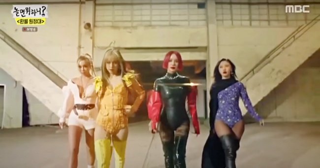 一直還沒有推出正式MV的退貨遠征隊,只有小小在節目出釋出短短片段吊盡觀眾胃口,其中才出現幾秒的這套已經被讚爆,嚴正化換髮成超短大紅色鮑伯頭,穿著紅、黑皮質緊身裝,下半身直接火辣大開岔,李孝利也是大開岔造型,還選擇超難駕馭的鵝黃色,而忙內華莎則是紫色寶石開岔裝,後面疑似搭配披風,彷彿變身神力女超人(笑)。
