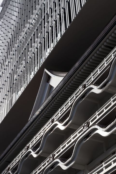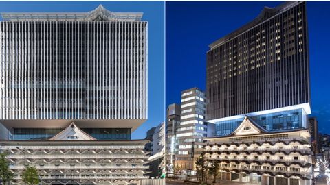 為保留歷史經典設計特色,隈研吾採用預鑄混凝土和鋁片來翻修唐破風外牆,並將「大阪皇家經典飯店」的客房搭建於其上,透過鋁製鱗片所產生的光影效果與原本的唐破風外牆相呼應,成功創造出新舊並蓄的現代建築。