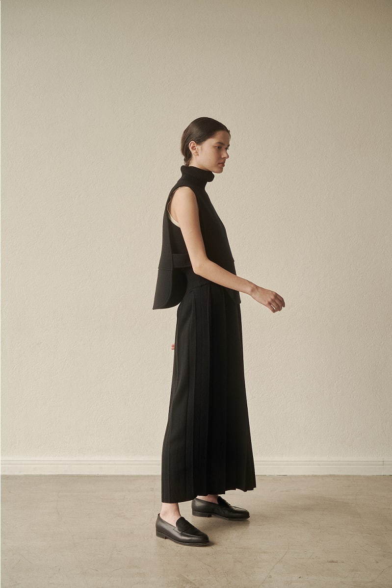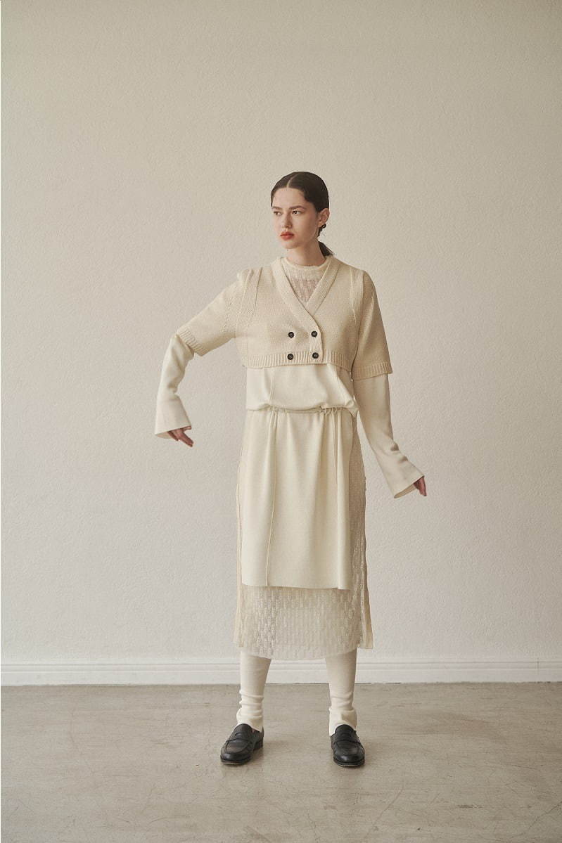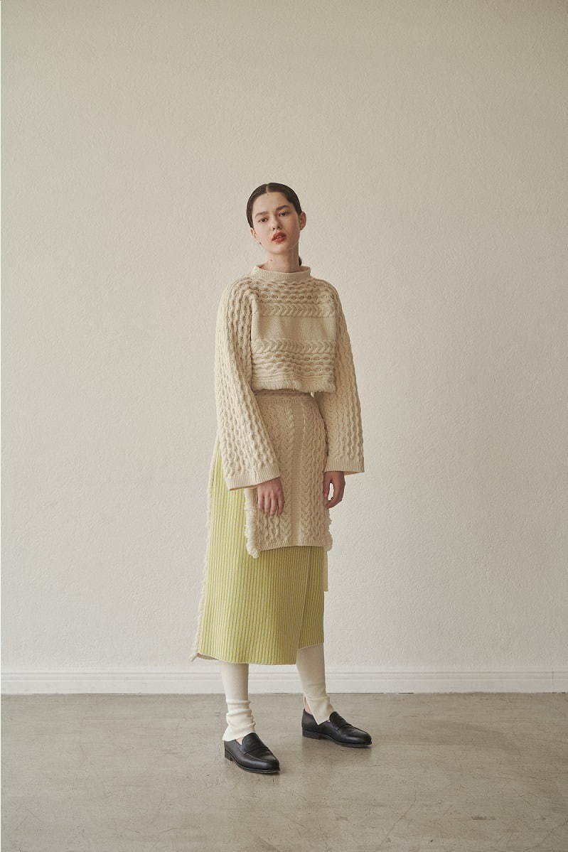 交錯的面料與色彩的對比皆是 TAN 2019 - 20 秋冬系列的重點設計,不管是由不同顏色所組織而成的線條、粗細針織的交互變化線條,又或是針織綁帶的線條,透過各種線條的錯落讓人可以在簡約且具份量感的衣著中感受到輕盈與豐富度,正是 TAN 於本季想透過織品持續傳達的設計可能。