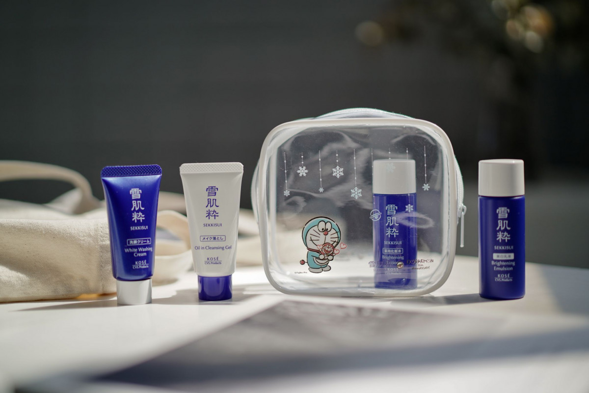 化妝包是每個女孩必備的小物之一,每次在包包裡海撈口紅、眼線或是外出旅行時保養品東一罐西一罐,真的超級困擾!「雪肌粋・哆啦A夢 透明化妝包」可將這些保養彩妝小物收入,透明的包體讓內容物一目瞭然~ 搭配今年8月上市的「雪肌粋 輕旅行保養組」,內含雪肌粋卸妝凝膠、淨白洗面乳、化妝水與乳液,基礎保養讓你一次搞定!