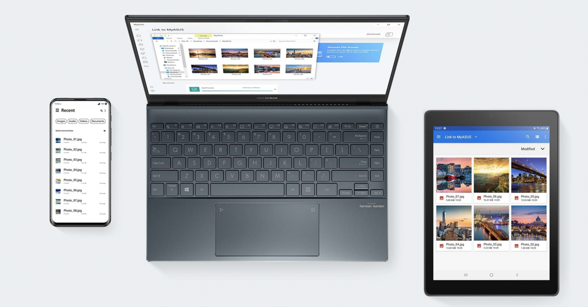 還可以透過它將 iOS 或 Android 手機與筆電整合、最佳化筆電的效能,或聯繫 ASUS 取得售後服務與相關支援。MyASUS 包含多種 ASUS 應用程式和工具,像是可將您的 iOS 或 Android 手機與 ZenBook 13(UX325) 進行整合以輕鬆執行多工作業的 Link to MyASUS,讓使用者無論身在何處都能輕鬆存取檔案,像是自由地在手機和筆電之間快速傳送檔案,或是遠端存取筆電中的檔案、將手機應用程式鏡射至筆電,甚至使用平板做為電腦的延伸螢幕,不只是功能強大、容易使用,也非常多元彈性且便利。