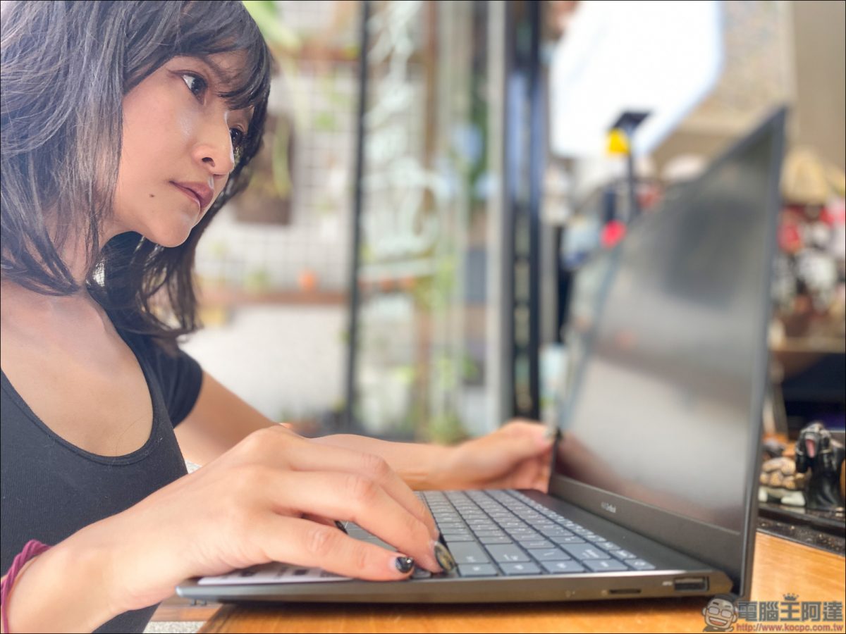 外出沒有桌子的話,也可以直接放在腿上用,輕巧的筆電就是方便,不管是在哪裡都能輕鬆用,無論是出外旅遊接到臨時工作,或是搭車通勤時有緊急狀況要處理,不是每個地方都有高度適合的桌椅,如果筆電不穩、太重、太大或是沒這麼輕薄,都無法如此簡單、輕鬆優雅的使用。