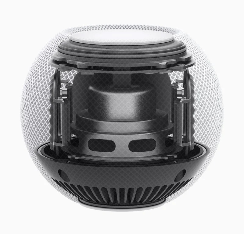 HomePod mini 則使用其處理器來最大化其效能較差的音訊硬體的硬傷。為了讓緊湊設計可發出更大的聲音, HomePod mini 中的 Apple S5 處理器與先進的軟體相輔相成,以分析音樂的獨特特徵並應用複雜的調音模型來將音量最佳化,調節動態範圍並即時監控驅動器和散熱器。