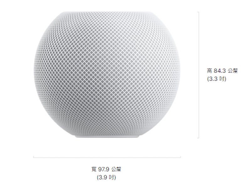 HomePod mini :高 84.3 x 寬 97.9mm ,重量 345 公克