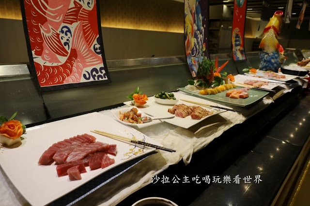 大家一開始都會先去拿生魚片,當天生魚片有炙燒旗魚、鮪魚、鮭魚、黃金鯡魚..等,請以當天提供為主