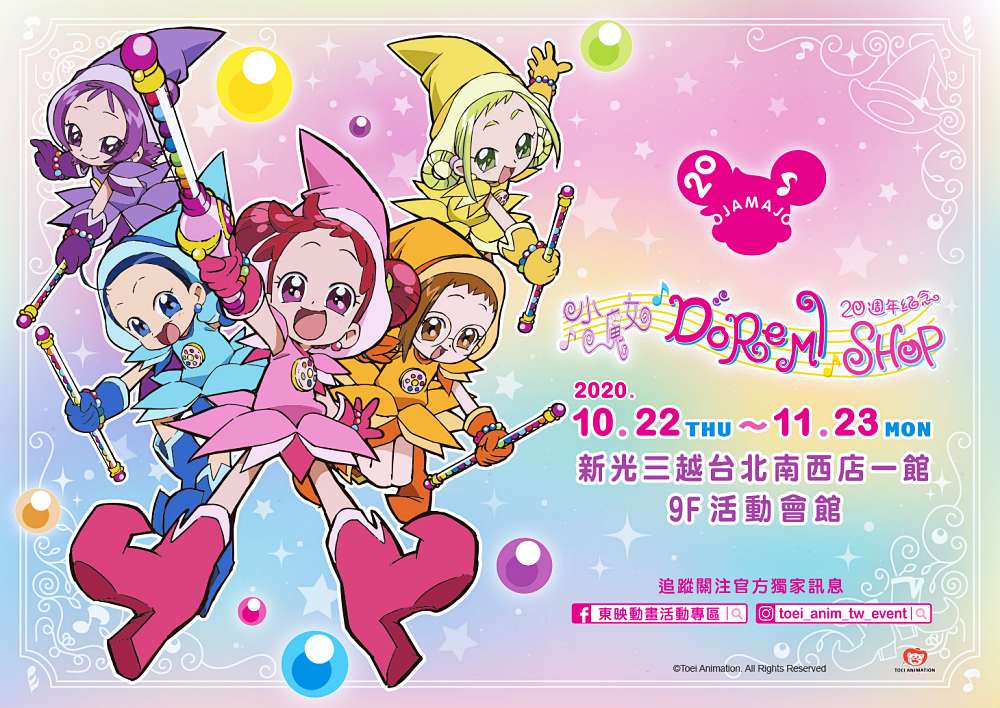 《小魔女DoReMi》20週年紀念快閃店位於台北新光三越南西店一館9樓,活動採免費入場,即日起舉辦至11月23日,除了實體週邊之外還有Bonnie Sugar聯名甜點。