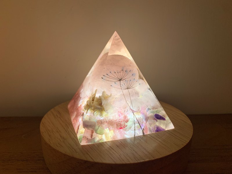 粉晶夜燈,以天然水晶、乾燥花製成,看著舒心、點亮後更令人解壓放鬆,適合放置在臥房、客廳、玄關、辦公室等,為居家生活更添美與療癒感!如果想送禮,木燈座也可以客製化雷射雕刻指定圖文,給親朋好友一個最暖心的禮物~