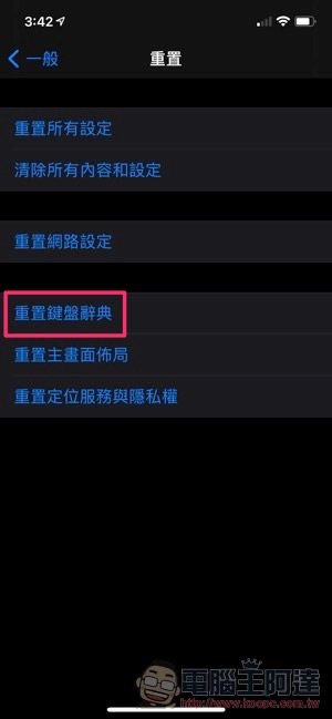 1. 重置鍵盤辭典