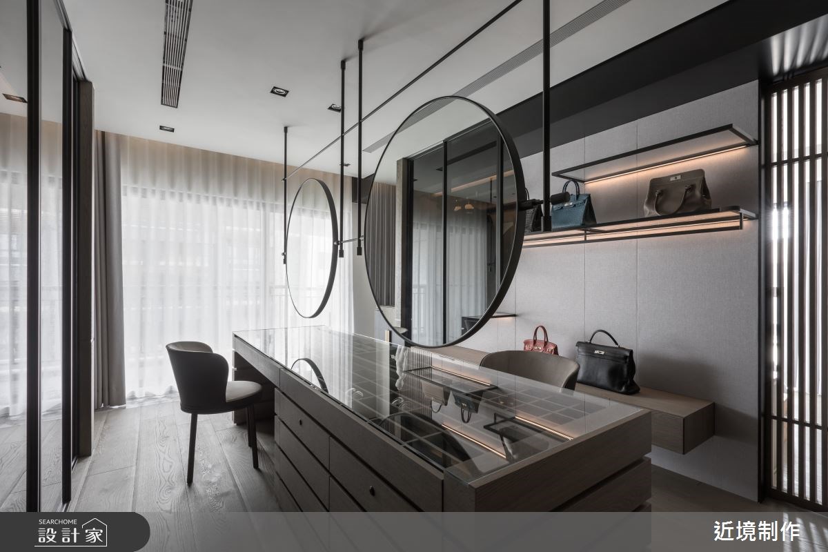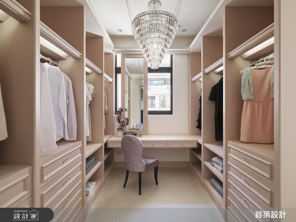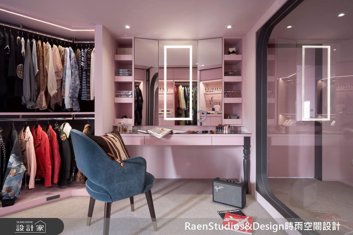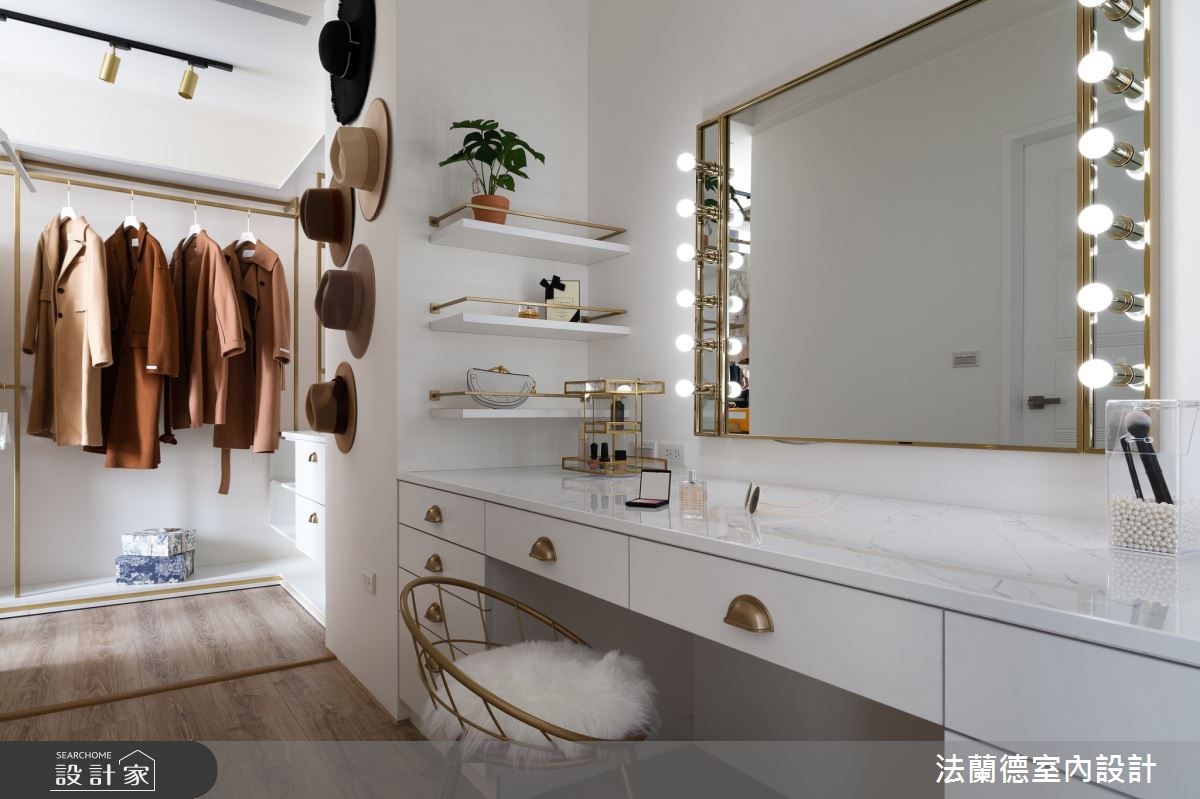 更衣室的燈光也是必須注意的細節,現在有很多衣櫃的吊桿上方,都會嵌入間接照明,足夠的光源能夠減少衣服的視覺色差,讓穿搭更為到位。如果更衣室內有規劃化妝台的話,鏡面周遭的照明也必須保持明亮,才能化出美好妝容。
