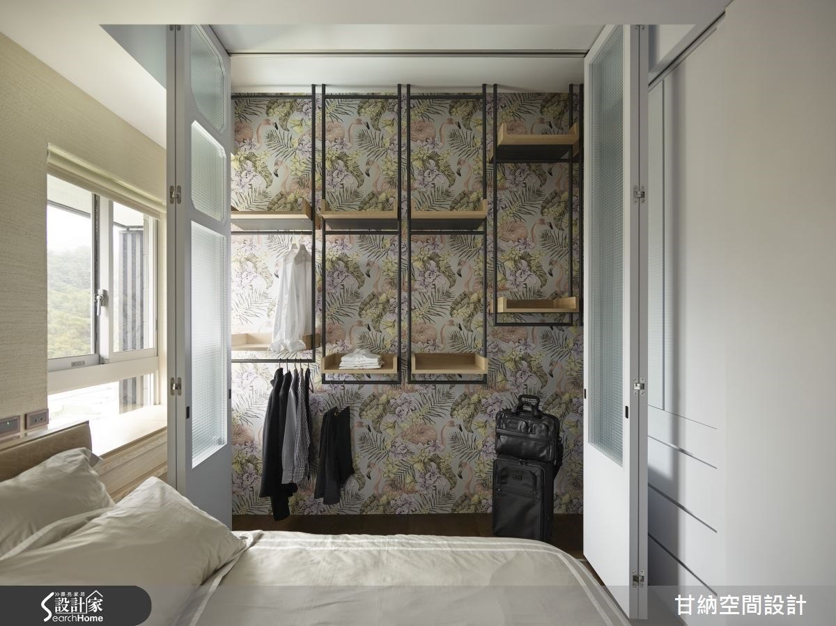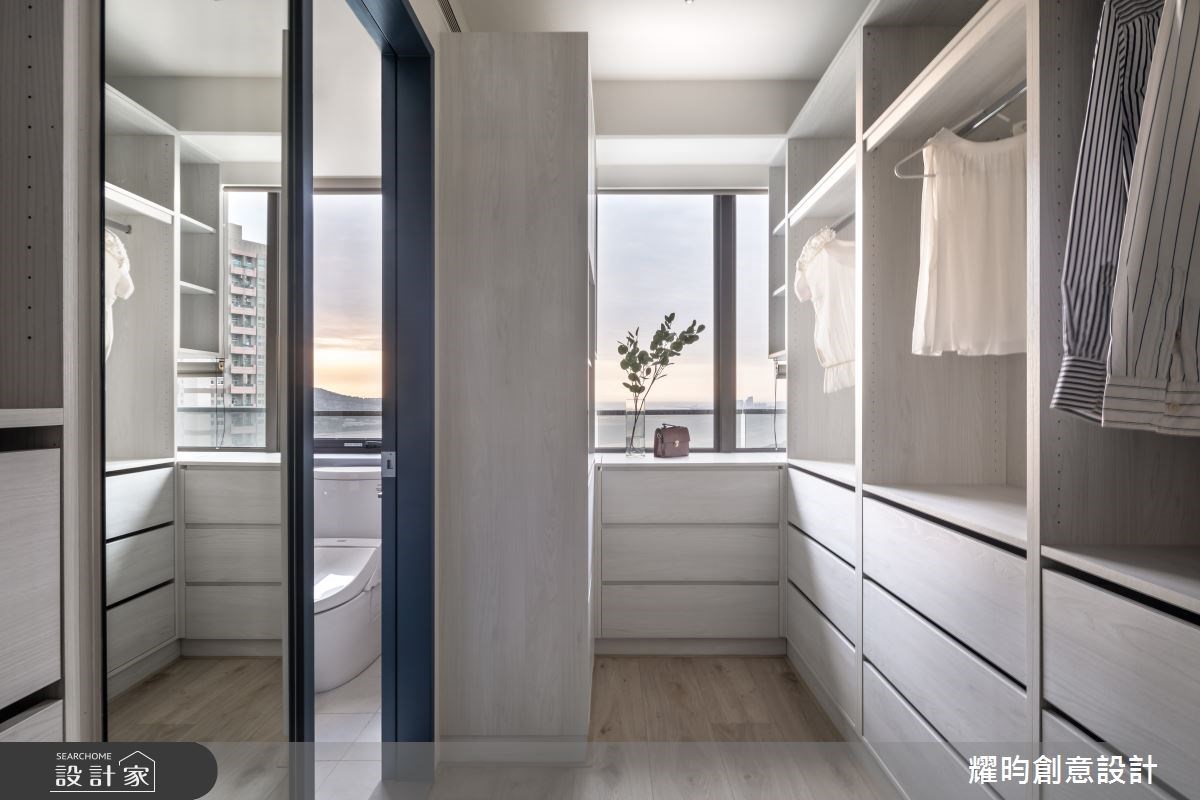 更衣室的收納櫃可以採取開放式設計,讓人一眼就知道各種衣服的位置,也能降低櫃體的壓迫感;若是封閉式櫃門就可以運用無門把設計,維持收納櫃的整體性,也能減少碰撞受傷的機會,提升空間安全。