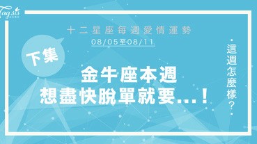 - 【08/05-08/11】十二星座每週愛情運勢 (下集) ~ 金牛座本週想盡快脫單就要...!