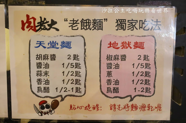 獨特配方的手工細麵,加上主廚特調的醬汁,可調成天堂麵和地獄麵,從字眼上就可以看出一個有辣一個沒辣了
