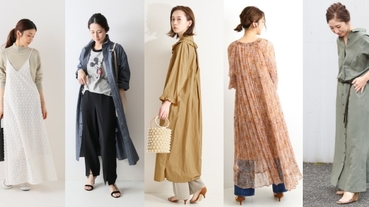 前開式的連身裙,當成薄外套穿也不錯!就算下身搭配寬褲或長裙,身形依然修長俐落,可以說是修飾身材的必備單品。