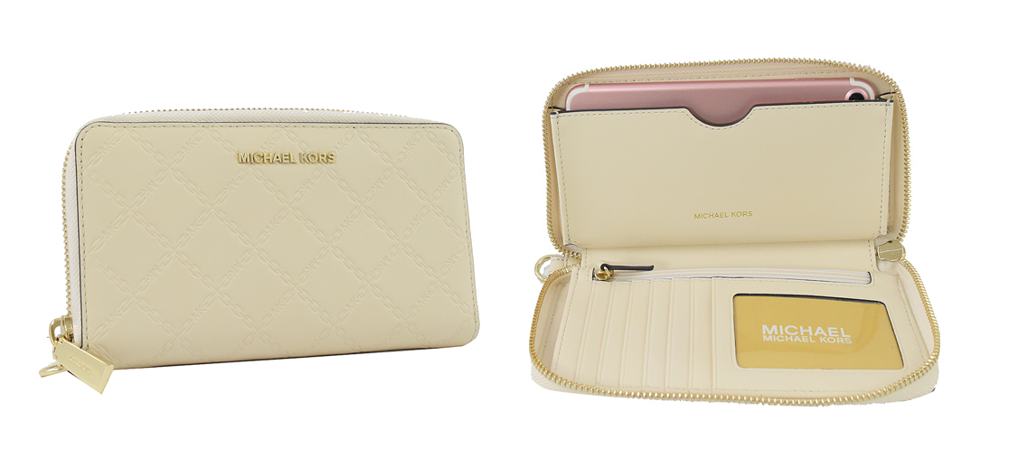 agnes b. 金屬LOGO防刮拉鍊長夾,使用防刮牛皮作為皮夾材質,讓喜歡到處冒險的射手不必時時擔心皮夾磕磕碰碰被刮壞的小問題! 樹綠色色調較深,不僅耐看也耐髒!4. 摩羯座 ( 12/23~1/20 ):MICHAEL KORS 奶油白長夾