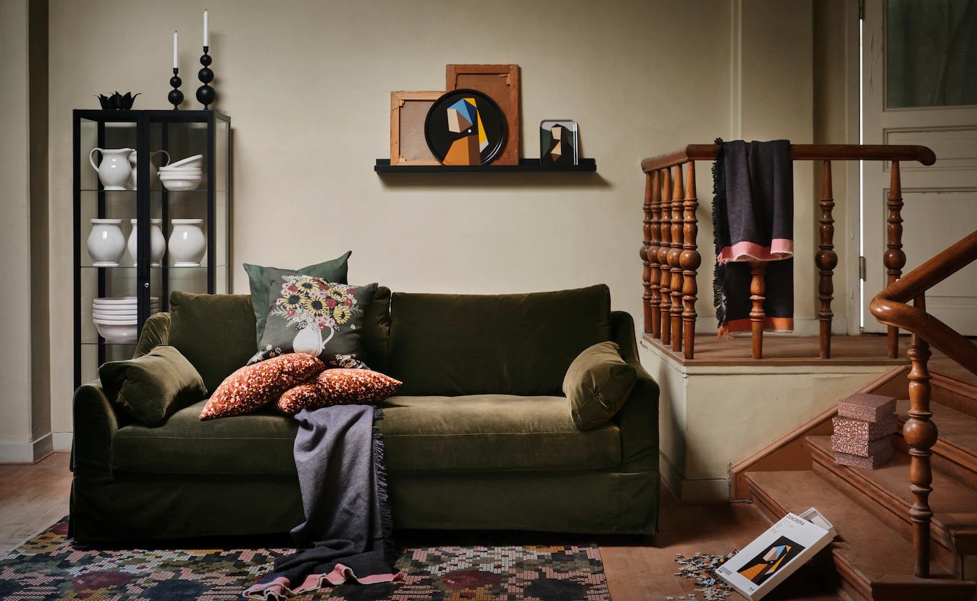 只有餐具還是不夠的!IKEA連毯子、靠枕套都要換上古歐洲風格。在許多家飾品中加入撞色元素,像是飽和色塊設計的萬用毯,或是華麗風格鑲有金邊花紋的酒紅色靠枕套,楓紅色系加上絨布材質,沉穩又不失華麗。就連平織地毯也不放過,每一張就像名畫充滿藝術感,顏色沉穩但又不失活潑感,正打算妝點家裡的你,不仿考慮一下這一系列吧!