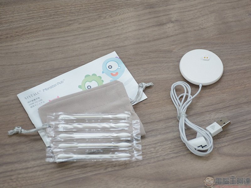 內盒中除了小怪獸魔吻主體外,配件部分還包含了磁吸式專用充電器、收納袋與棉花棒。與過去的小怪獸系列不同,磁吸式充電設計,只需將小怪獸魔吻底部放上充電板上,藉由磁力固定後即可進行充電。棉花棒則是 SISTALK 另外的小貼心,讓妳能更妥善地清潔小怪獸魔吻的小嘴與舌頭,為這一次的潮湧徹底善後,為下一次的激情做好準備。