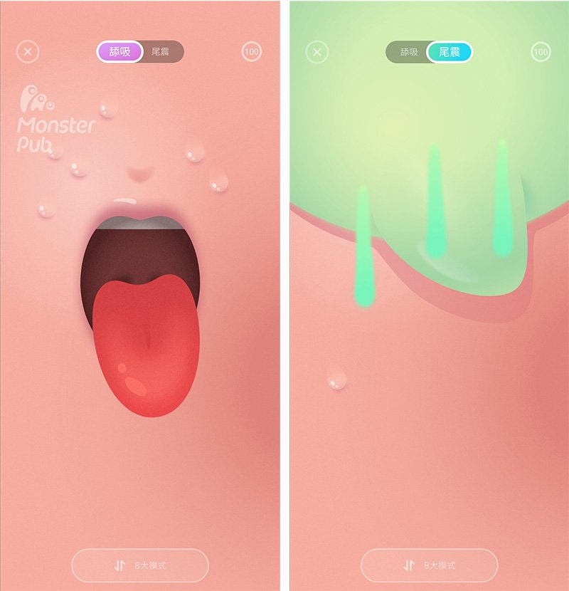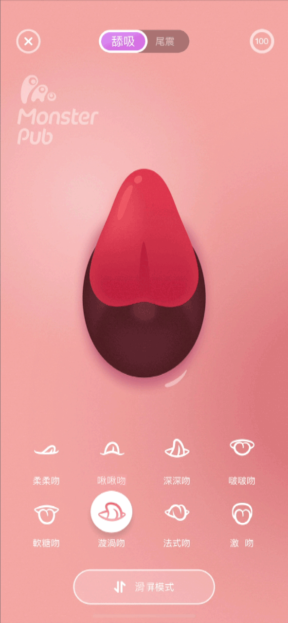 如果你更想掌控每一次的親吻與震動,那妳一定要試試「滑屏模式」。藉由手指或點或滑來控制小怪獸魔吻的小舌頭動作以及震動模式、強度,無論是單指的輕輕觸控或是激情間的多指滑動,讓小怪獸魔吻賣力討好,找到妳最喜愛的動感,就是這麼簡單。
