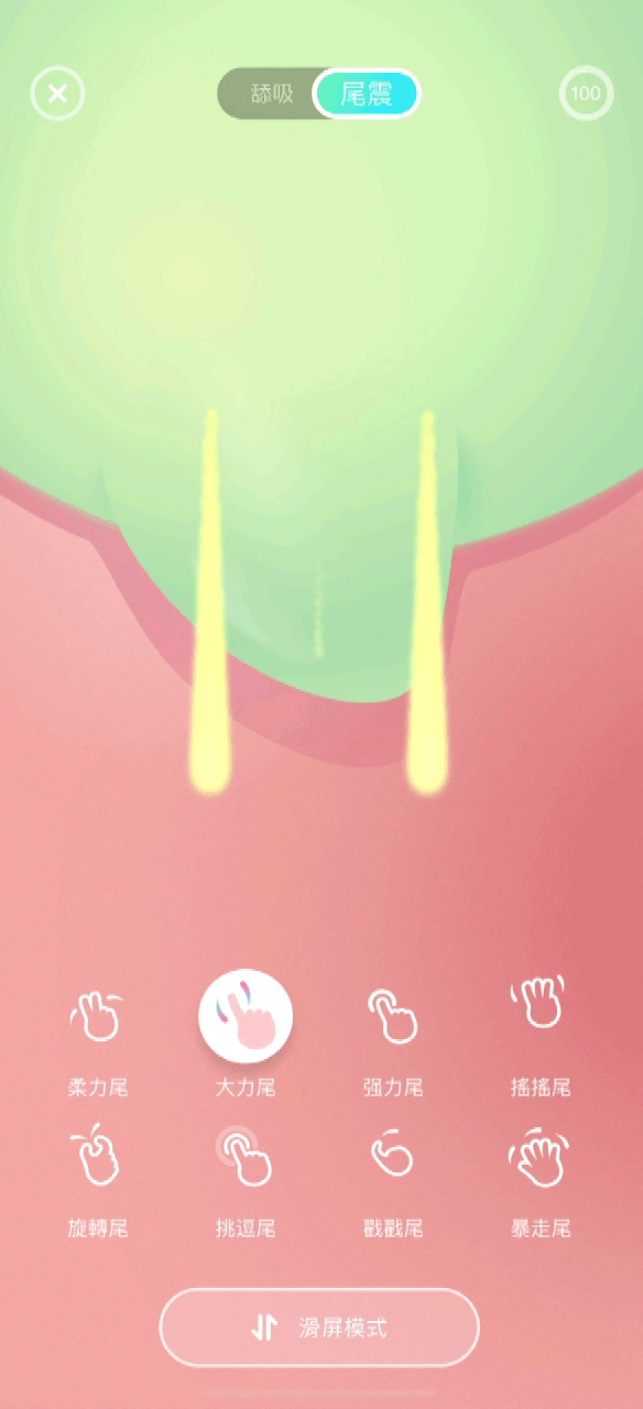 尾震分頁中同樣提供 8 種內建模式,手指輕點擊可切換,用 8 種不同的震動頻率深度撩撥起妳的熱情。