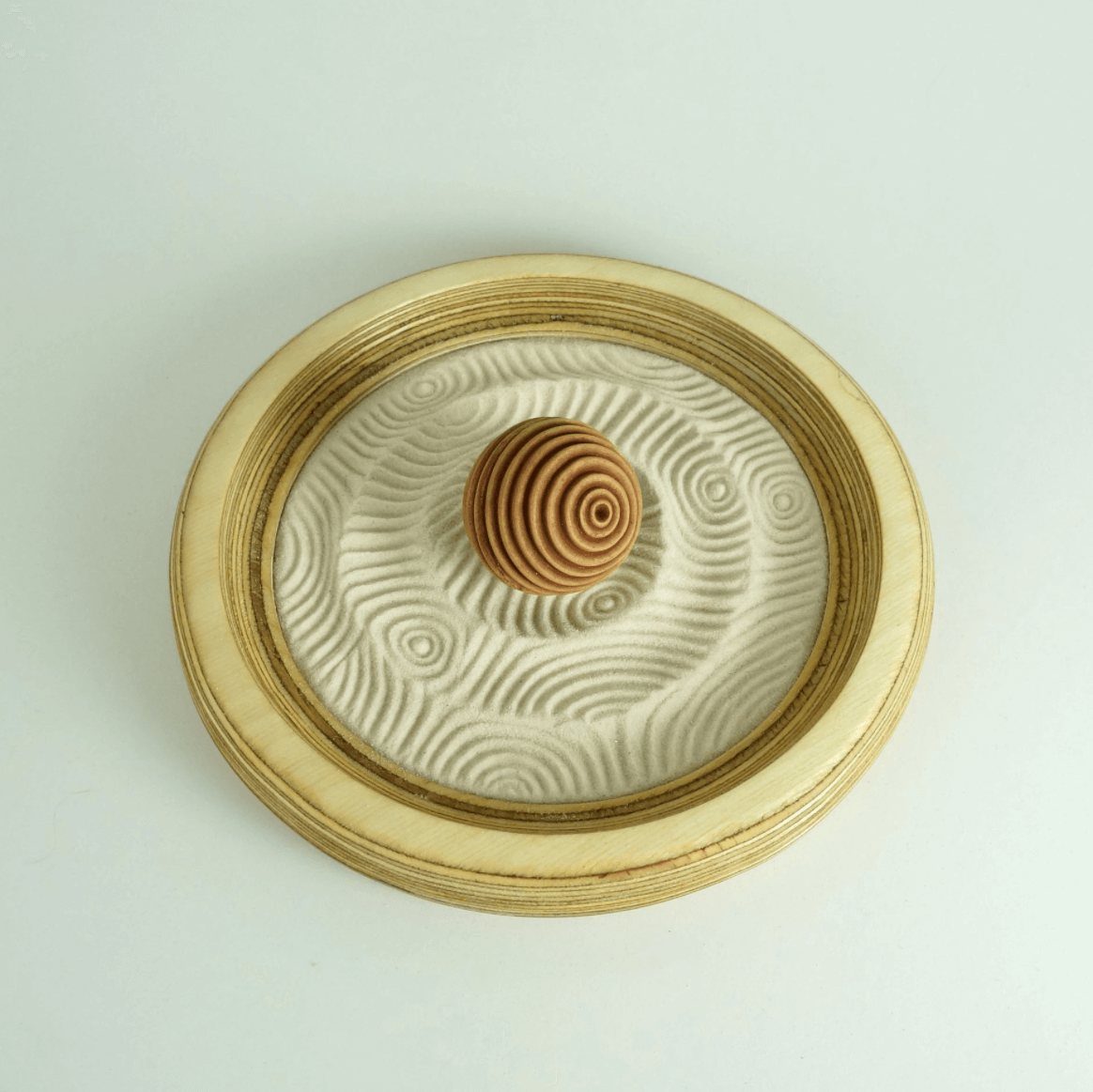 在沒有起點,也沒有終點導流圈可以緩解你每天的情緒與壓力,透過壓印沙子並創建出各種類型的圓形圖案。就像是你小時候喜歡做的沙畫為基礎,並通過沖壓和滾動球體來進行組合,這個過程可以促進放鬆和緩解焦慮。