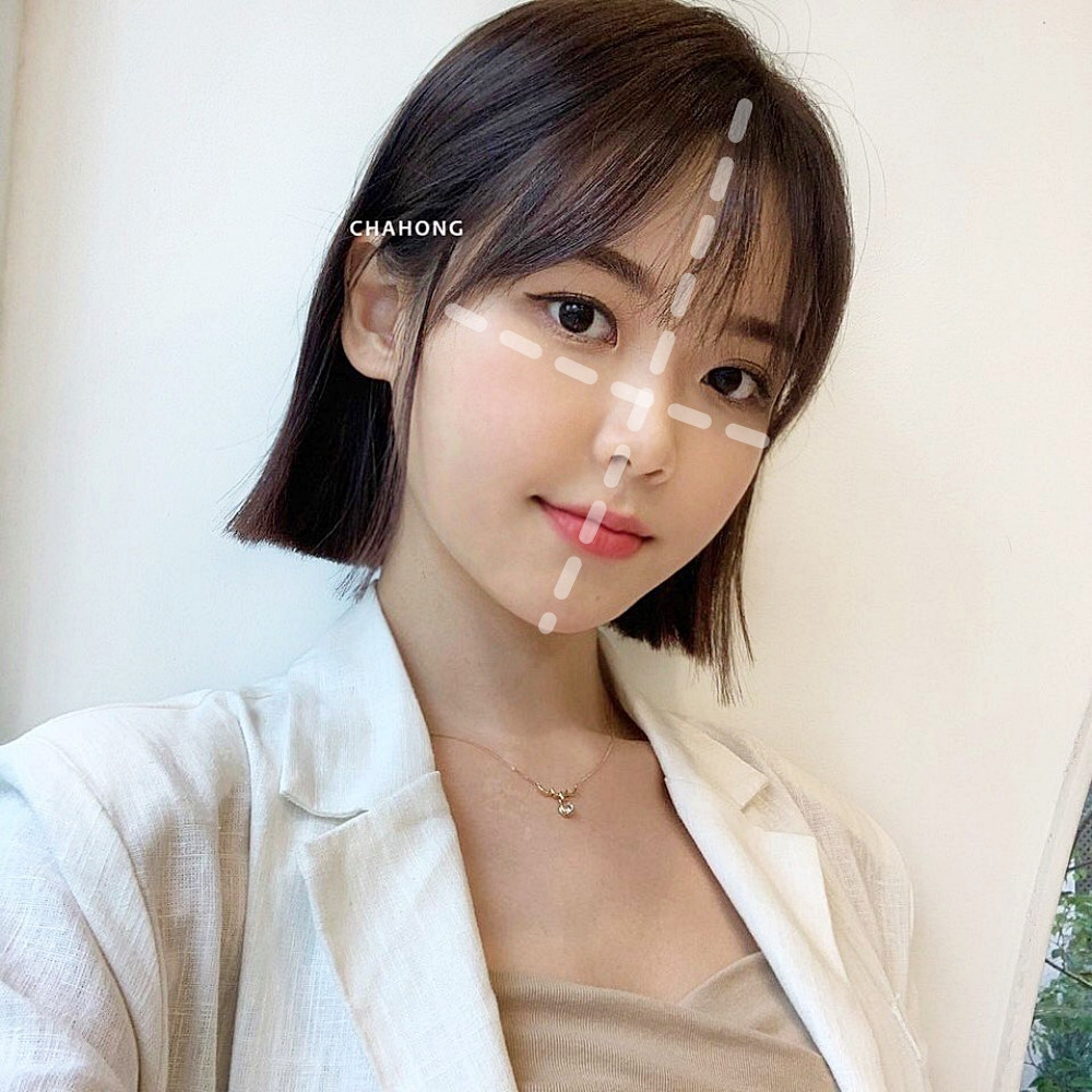 短瀏海的話,則可以像譚松韻一樣斜分、與兩側的鬚鬚銜接,如果將頭髮稍微塞在耳後的話,也可以有甜美的少女感。