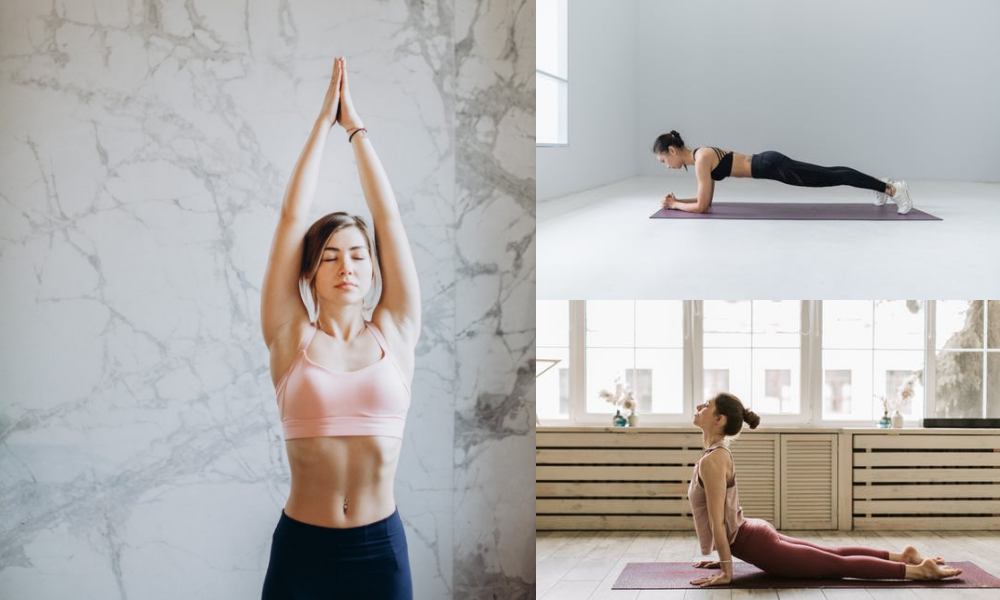 採俯臥姿,手支撐於胸部兩側,將上半身抬離地面,雙腿向後伸直,將腳背平貼於地面,腰椎抬起與臀部呈90度,肩膀記得要放鬆,不能聳肩、縮頸,眼睛平視前方。此組動作有助打開胸部,減輕胸悶及呼吸不順,也很適合長時間在電腦桌前、低頭滑手機者,對於舒緩肩頸痠痛及背部疼痛有感。