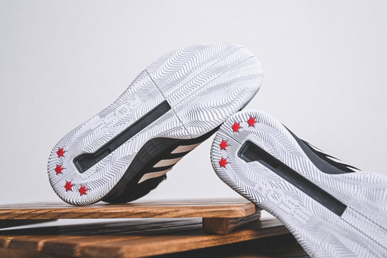 再說到 D Rose 7,作為 adidas Basketball 歷來首度邁入第 7 代的球星簽名戰靴,也是 D Rose 系列首度使用全腳掌 BOOST 中底科技,對於品牌或整個系列作來說無疑都具有里程碑意義,然而這個時期 Derrick Rose 則是面對到職業生涯重大轉捩點,2016-17 賽季開戰前的夏天,公牛隊決定將他交易至尼克隊陣中結束雙方八季的聯手,當年 Derrick Rose 接到經紀人打來的電話告知交易消息時人正在錄製紀錄片,當下情緒一度受到影響而掩面啜泣落下男兒淚,離開芝加哥後他逐漸也從球隊頭號主力轉為輔佐角色。如今 D Rose 11 引用 7 代刻紋重現那踏上新旅程的階段,更在後跟位置加入象徵芝加哥市旗的四枚六角星,這是當年 D Rose 7 未出現的設計,此刻彷彿在說著無論 Derrick Rose 身處何方,風城之子永遠是芝加哥的驕傲。
