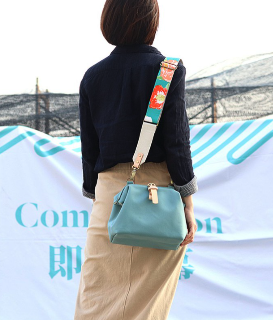 這款醫生包以日本高質感的防水帆布製作而成,柔和的顏色不會因為摩擦或潮濕而掉色,是一款久用仍可以保有美麗色澤的口金包;立體的剪裁讓包包裡裡面即使沒有放東西,也能穩穩地站著。另外還可以選擇背帶的材質,花布背帶讓包包正有日本味,植鞣皮革背帶則是簡約風,兩種不同的背帶讓同一個包包有不同風格。