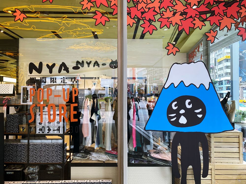 此次快閃店店裝與上次風格大不同,以可愛的日本富士山為主題,除了店外有大型輸出可拍照打卡之外,還有多樣NYA-富士山周邊可收藏,像是杯墊、馬克杯、刺繡貼、帆布袋等等!