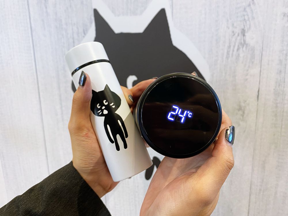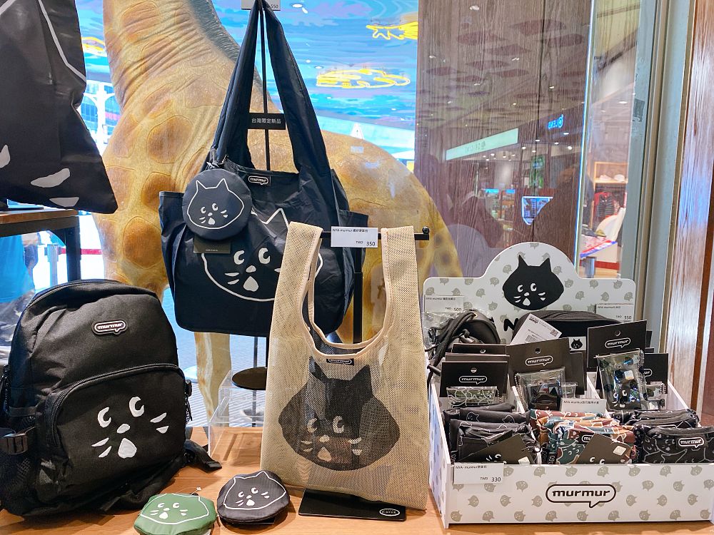 台灣限定週邊還有NYA-×murmur多功能包袋系列,有購物袋、後揹包、防水雨傘套、皮革票卡夾等週邊可入手;保溫杯概念是「兩個願望一次滿足」,買大送小,小款為120ml,大款為480ml,瓶蓋上還有智能測溫功能。