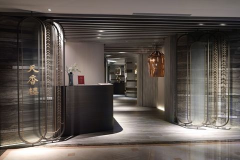 杭州為南宋首都,期間孕育的人文藝術與餐飲風潮登上顛峰,改裝後的天香樓餐廳內裝聚焦杭州及宋代文人四藝—點茶、插花、掛畫與焚香的延伸,並將西湖十景中的「曲院風荷」、「雙峰插雲」和「斷橋殘雪」以水墨意象表現。