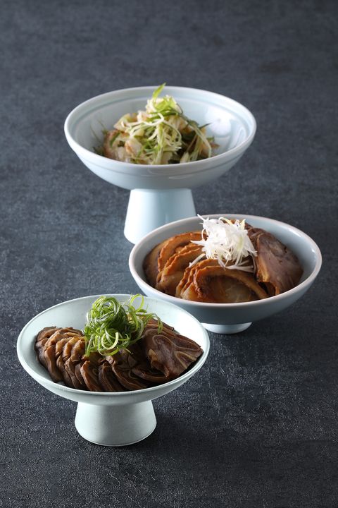 豬肚捲豬耳的肚耳捲,及牛肚包裹牛筋和牛腱的筋肚捲腱子兩道前菜小品,使用紹興酒、醬油調味並經長時間滷泡、手工綑綁再二次浸滷,製法極其費工費時,口感扎實香氣十足!