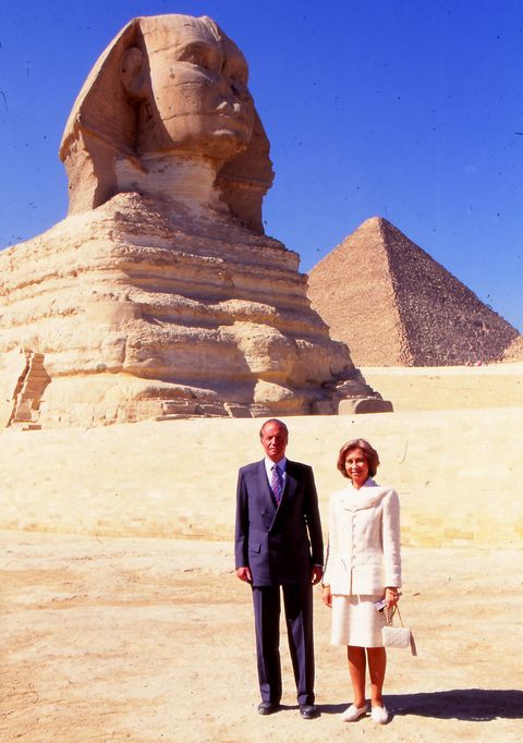 蘇菲亞王后與國王胡安卡洛斯一世在出訪埃及的官方行程中,與史芬克斯神像合照。