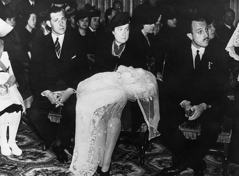 當時還只是王子的菲利浦與母親蘇菲亞王后,正走進馬德里王宮參加軍事典禮。