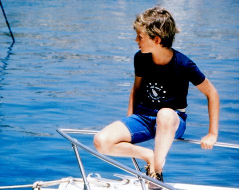 菲利浦在巴利亞利群島(Balearic Islands)的假期中搭著小船。
