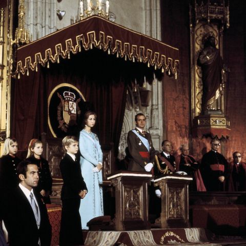 當時還只是王子的胡安卡洛斯與蘇菲亞在雅典王宮中舉行婚禮。